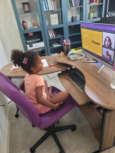 My four-year-old daughter is in her class with her Homeschool Spanish Academy teacher.